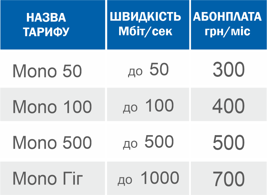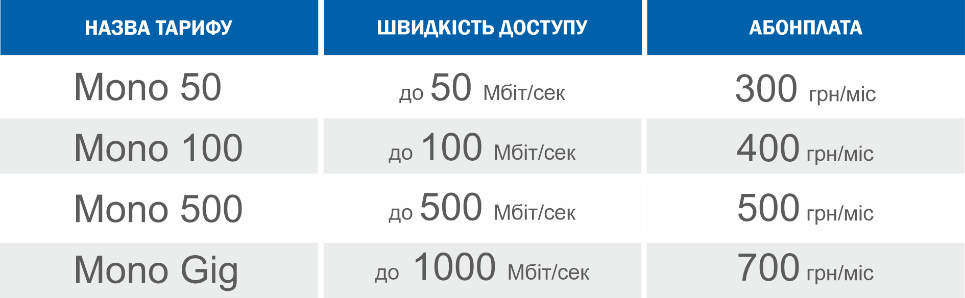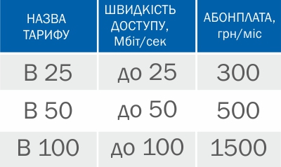 УВАГА! ТАРИФНІ ПЛАНИ діють виключно для домашнього користування і не розповсюджується на комерційну діяльність.